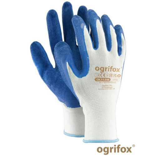 Рукавиці захисні OX.11.558 LATEKS з латексним покриттям, біло-блакитні — OGRIFOX